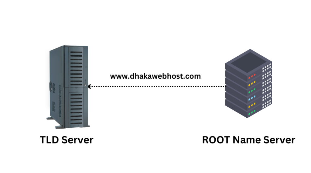 ROOT SERVER হল এমন একটি সার্ভার যেখানে পৃথিবীর ডোমেন নেমগুলোকে শ্রেণীবিন্যাস করে রাখা হয় । পৃথিবীর মোট ১২টি সংগঠন এই সার্ভারটি পরিচালনা করে আর এই সংগঠনগুলোর মাধ্যমে সারা বিশ্বব্যাপী বিভিন্ন প্রান্তে হয়েছে ১৩টি রুট সার্ভার, যাদের প্রত্যেকের আইপি আলাদা । তারা সার্বক্ষণিক এই সার্ভারকে আপটুডেট রাখে । ধরলাম রুট সার্ভার www.dhakawebhost.com এর IP বের করতে পারল না । তখন ROOT SERVER এই রিকোয়েস্টকে TLD নামক আরেক সার্ভারে প্রেরণ করে ।