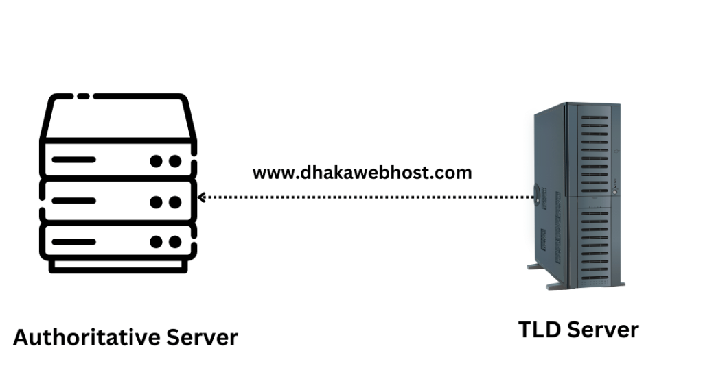 TLD হল Top Level Domain সার্ভার । এই সার্ভারে উচ্চ মানের ডোমেন এক্সটেনশন গুলো রেকর্ড করে রাখে । যেমন, .com , .org, .net , .edu, .gov ইত্যাদি হল Top Level Domain এর উদাহরণ । এই সার্ভারে .com ডোমেইনের ইনফর্মেশনতো আছে কিন্তু তার আইপি অ্যাড্রেস তার কাছে স্টোর থাকে না । সে ফাইনালি আরেকটি ওয়েব সার্ভারে এই রিকোয়েস্টটি পাঠায় । এই ফাইনাল ওয়েব সার্ভারের নাম Authoritative Name Server । এ সার্ভারে সকল ডোমেইনের ইনফরমেশন ও আইপি স্টোরড থাকে ।